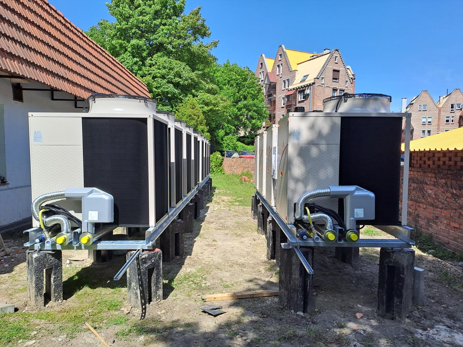 Urządzenia działają na wodnym roztworze glikolu propylenowego poprzez układ pompowo-wymiennikowy na zbiornik buforowy o pojemności 3000 litrów. Następnie medium trafia na obiegi na budynki 1,2 oraz 3.